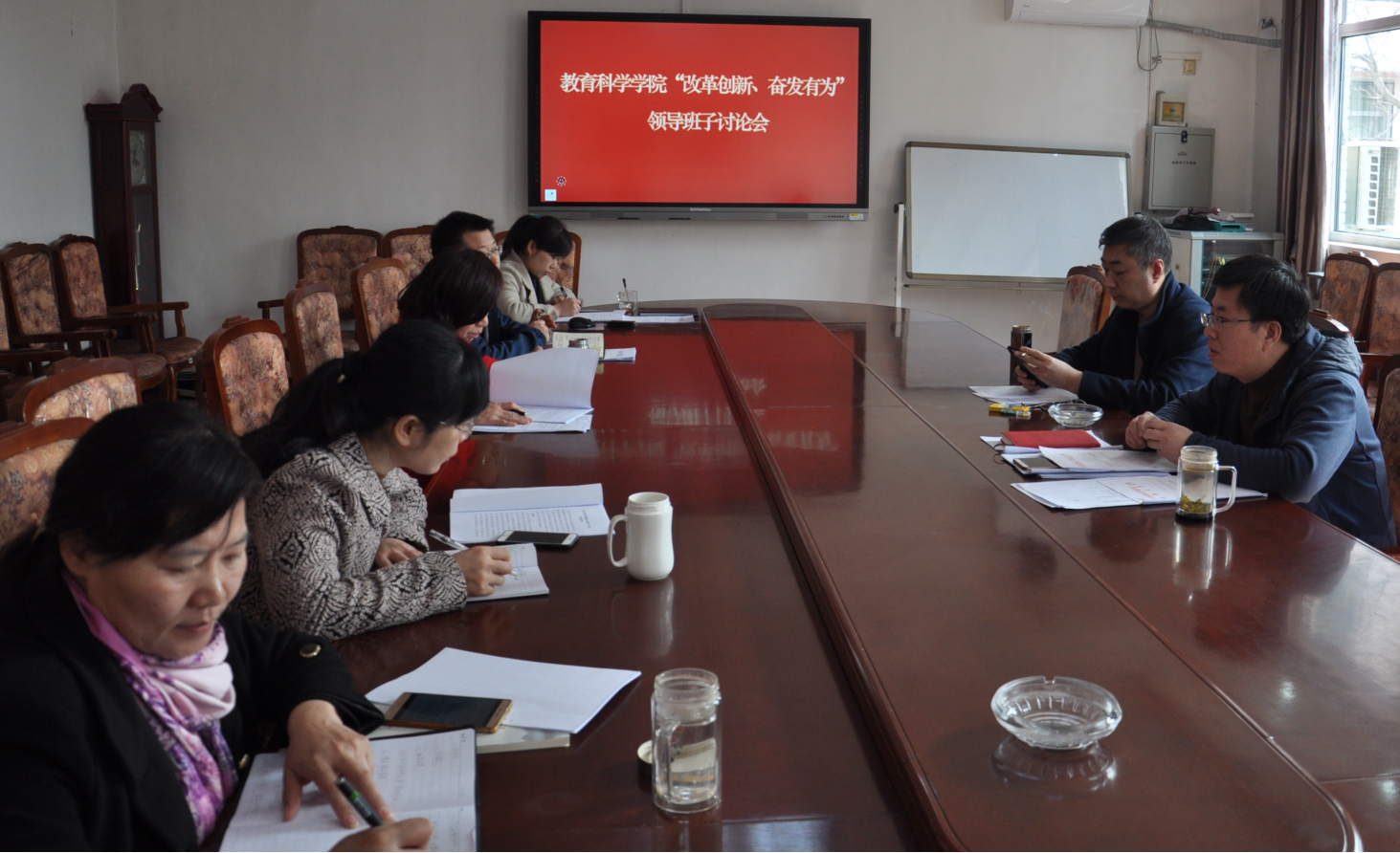 3月8日上午,9428cn太阳集团古天乐在学院会议室召开“改革创新、奋发有为”领导班子讨论会,党委委员、班子成员和教工支部书记参加,韩树林书记主持会议。