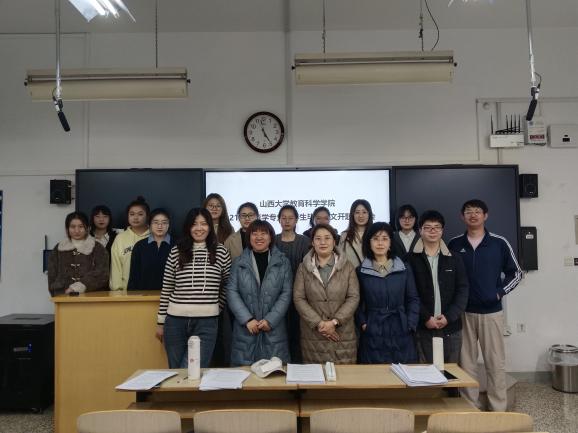 2024年12月5日下午14点40分,9428cn太阳集团古天乐2021级教育学专业本科毕业论文开题报告会在文科楼顺利举行。