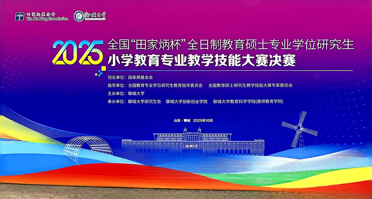 近日,2025年全国“田家炳杯”全日制教育硕士专业学位研究生小学教育专业教学技能大赛在聊城大学落下帷幕。该赛事由田家炳基金会冠名,全国教育专业学位研究生教育指导委员会和全国教育硕士研究生教学技能大赛专家委员会为指导单位,本次赛事由聊城大学主办,是我国层次最高、规模最大的教育硕士教学技能大赛。大赛赛程历时四个月,初赛共有115所教育硕士培养高校的553名小学教育专业全日制教育硕士研究生参赛,决赛于10月24日至26日举行,共有全国104所院校的278名选手参与决赛。经过初赛激烈角逐,公司有五位员工脱颖而出参加决赛,公司党委书记刘昕普老师,教育学系郑玉飞老师、研究生教学秘书韩曼茹老师带队参赛。